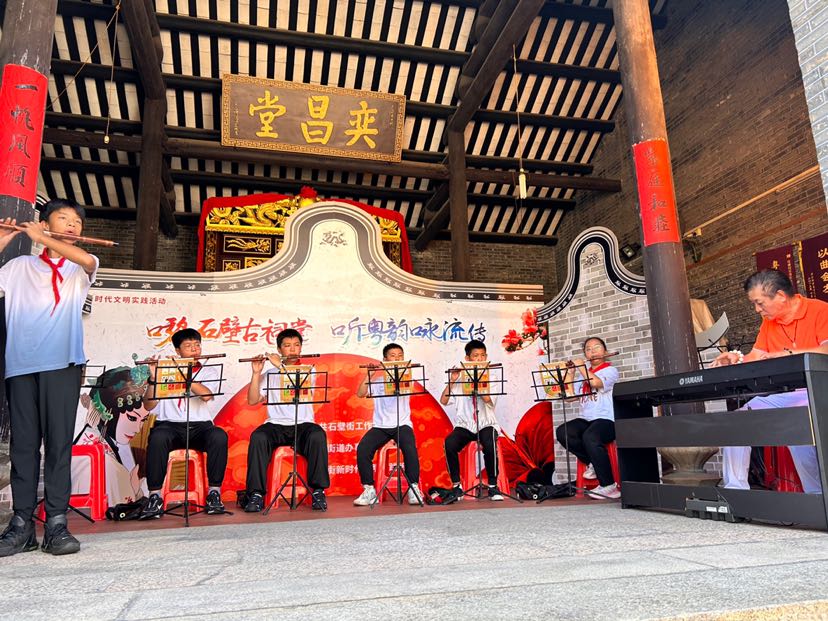 为了让广大少年儿童认识、了解、感受中国民乐乐器和文化的魅力,激发少年儿童对民乐的兴趣与爱好,传承中华传统文化,此次公益大课堂特增设民乐班。在民乐课堂上,石壁街文联两位顾问,国家二级笛子演奏家甘少华、广东音乐民间文艺家卢国尧分别带领学员学习乐器的来源与历史,运用民族乐器演奏多首经典曲目,让学员在触摸、试奏过程中学习演奏方法,感受中华传统民乐的魅力。