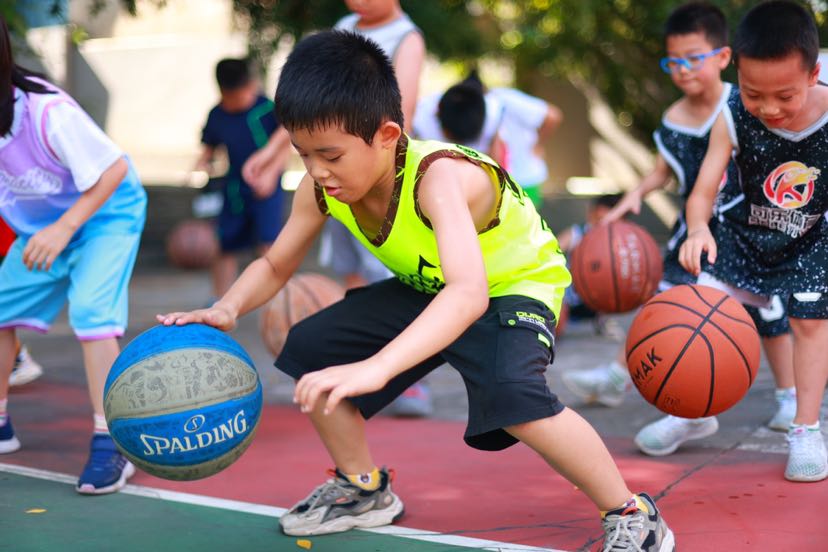 “控球一定要稳,保持节奏……”课堂上,教练耐心示范讲解,带领孩子们学习单、双手拍球,蹲下拍球、运行拍球等基础动作以及传接球配合、运球突破、攻防移动、过人投篮、个人防守等技术动作。
