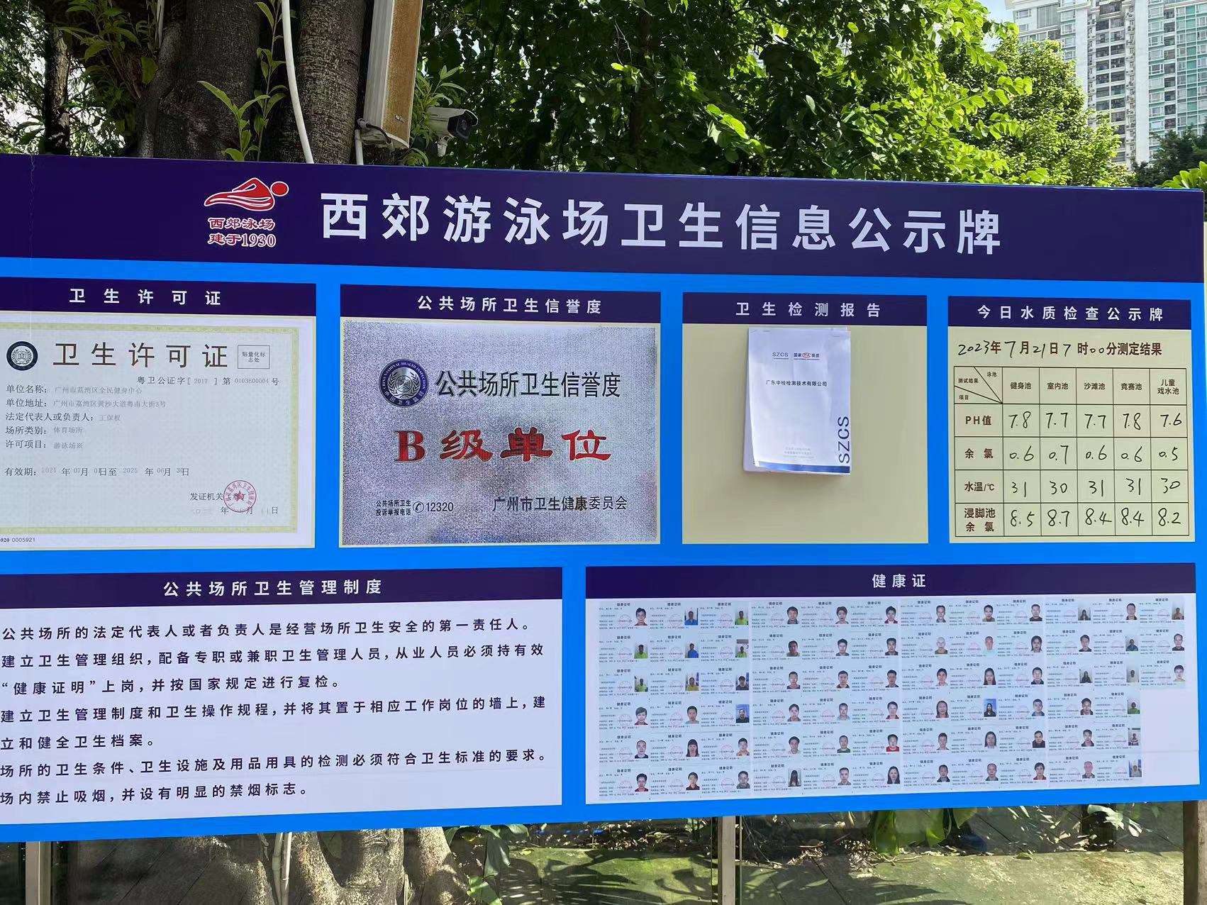 除了检测,三级卫生监督部门还重点检查了游泳场所卫生管理制度的落实、从业人员体检及培训情况,场所布局及通风、池水循环净化、消毒和水质检测及结果公示等情况。