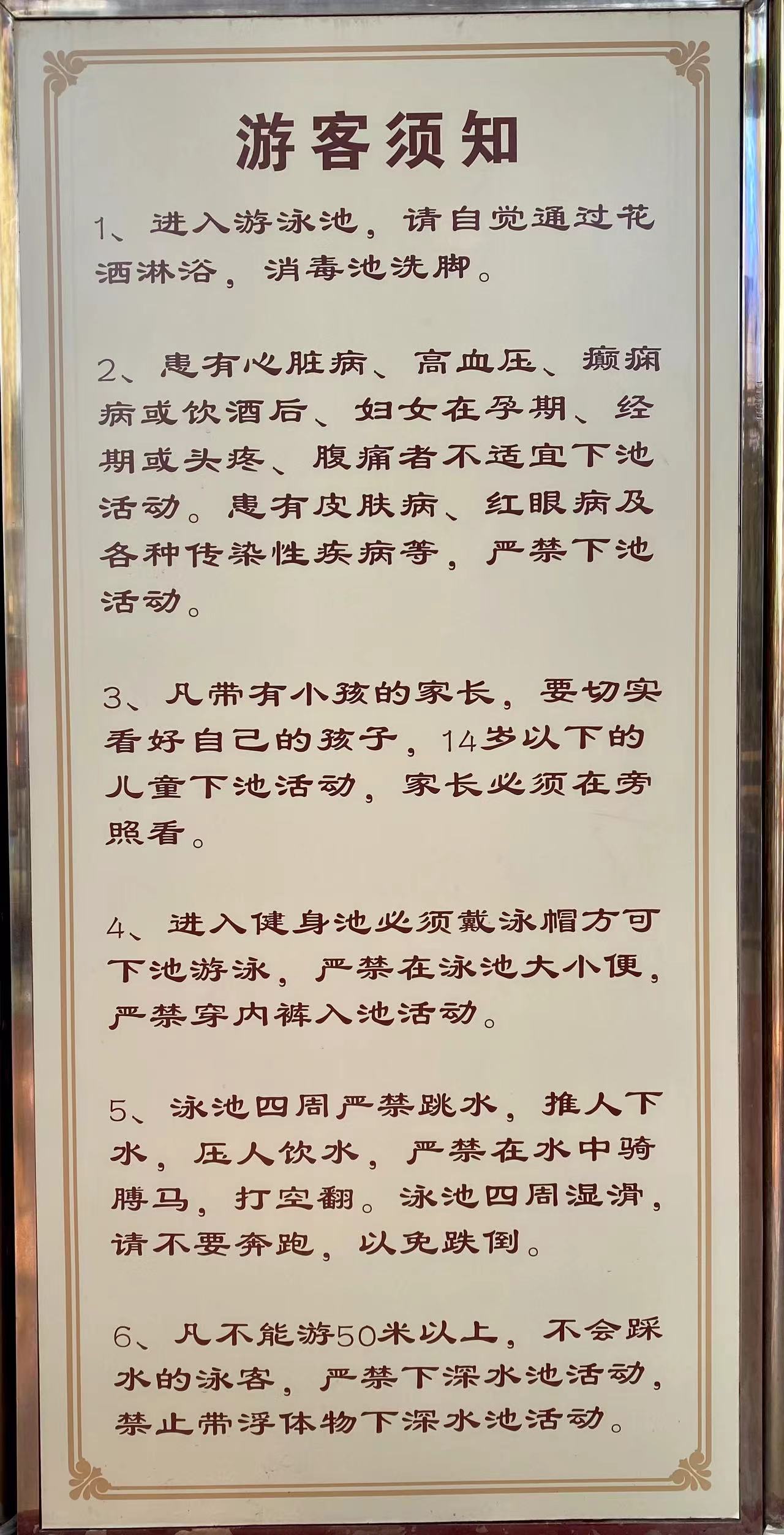 以下“游客须知”正是西郊泳场根据实际情况列出的安全提醒: