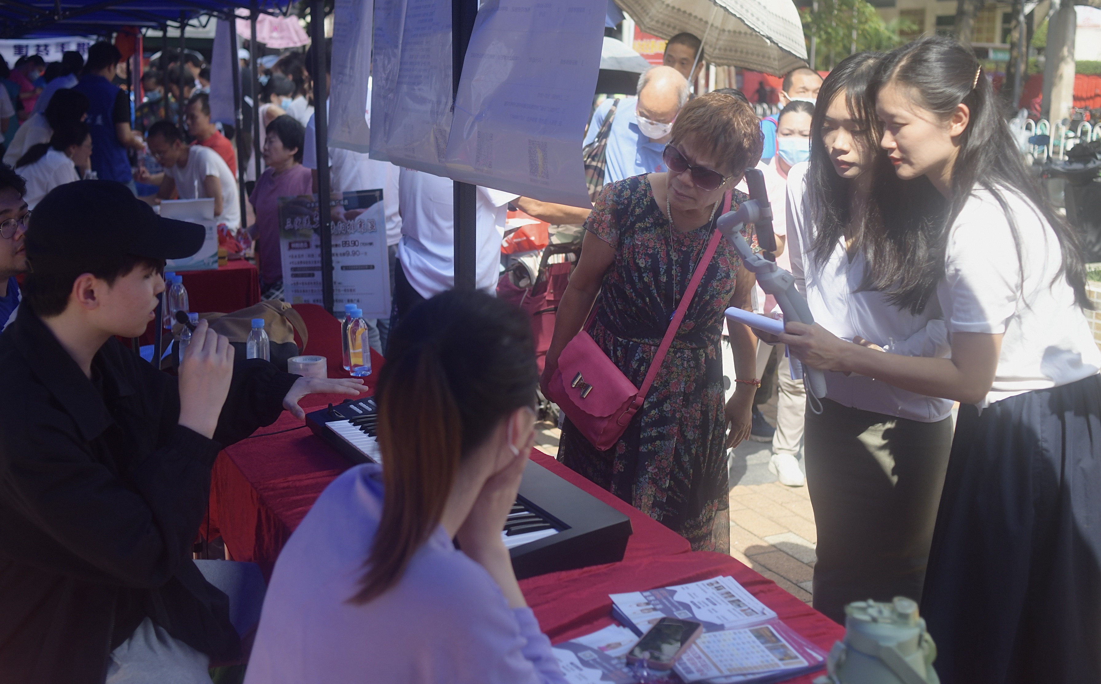 近日,一场特别的“庙会”在广州市海珠区富力金禧广场举行。这是海幢街2023“筑梦启航 ‘职’引未来”就业驿站主题庙会,现场除了招聘摊位、就业社工职业指导外,还有设置了“沉浸式”直播带岗、公益义诊、慈善义卖等内容,让求职者“逛着庙会就把工作找了”。