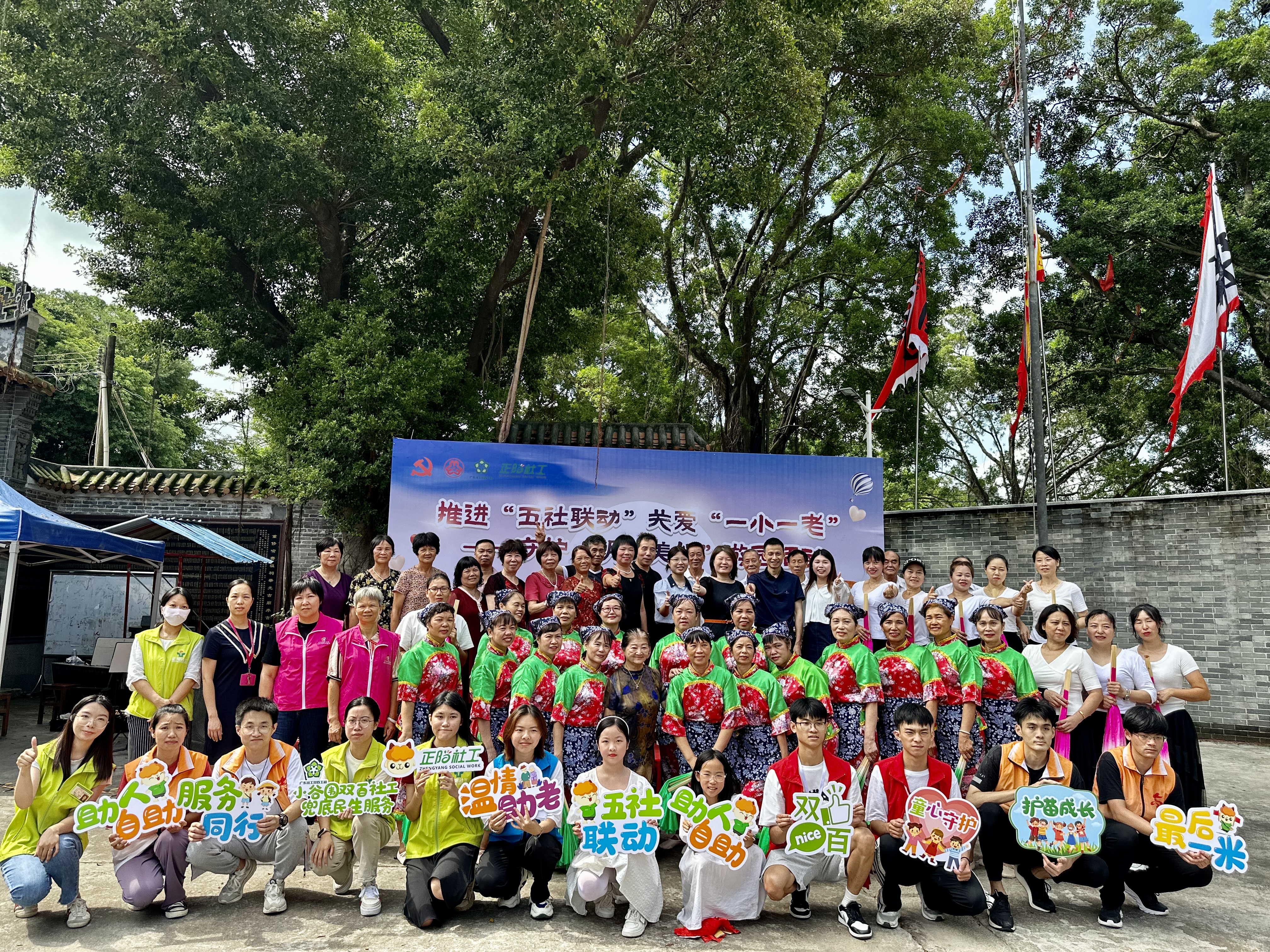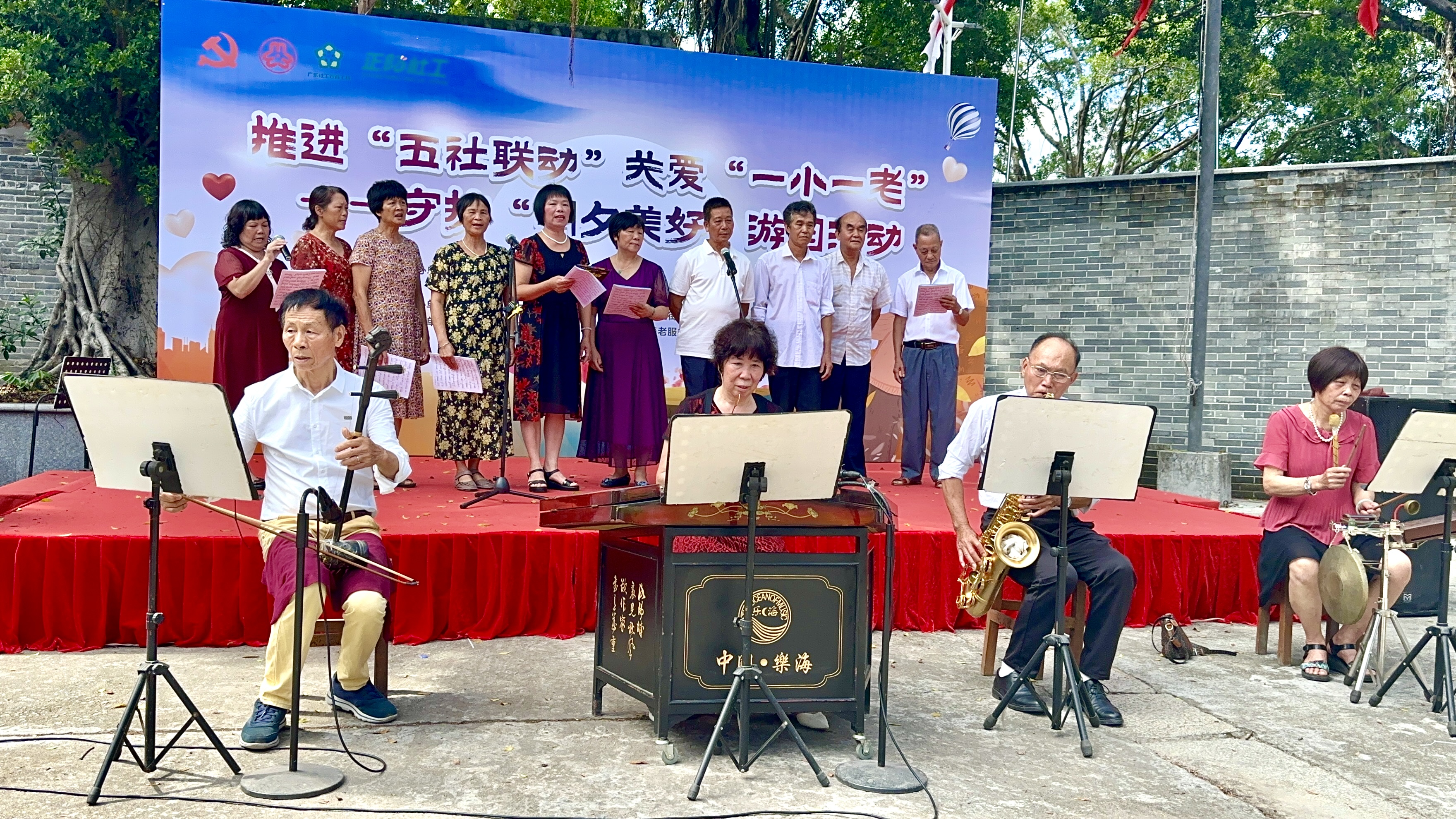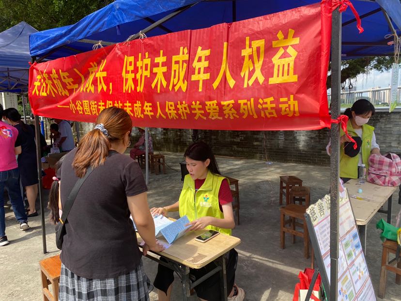 正在开展的是由广州市番禺区小谷围街公共服务办、妇联、未保工作站、公共卫生委员会、南亭村党委、南亭村妇联联合广州市番禺区正阳社会工作服务中心、小谷围街社工服务站、小谷围街综合养老服务中心共同举办的“推进‘五社联动’关爱‘一小一老’守护‘朝夕美好’”游园活动。