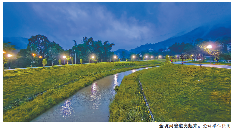 金坑河碧道,水波悠悠,两岸绿草如茵,长长的步道犹如一条彩色飘带,成为群众休闲散步的好去处。从河泥堵塞、水浸成患,到如今水清岸绿,新龙镇金坑河的变化述说着黄埔区绿美建设的喜人成绩。近日,金坑河又迎来新升级,一盏一盏路灯点亮了两岸碧道,温暖了群众的心。