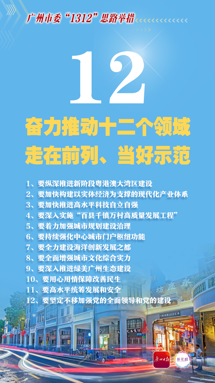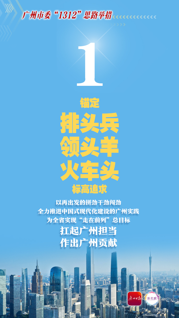 7月23日,中国共产党广州市第十二届委员会第六次全体会议召开。广州市委围绕实现习近平总书记赋予的使命任务,对照省委“1310”具体部署,细化形成“锚定排头兵、领头羊、火车头标高追求,激活三大动力活力,奋力推动十二个领域走在前列、当好示范”的“1312”思路举措。