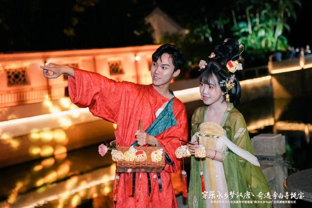7月22日,“穿‘乐’水乡梦汉唐·奇遇李白寻甄宝”活动在南沙湾·水乡一条街成功举办。当晚,来自四面八方的游客身着汉服,齐聚水乡一条街,如临幻境般地夜游盛唐集市。