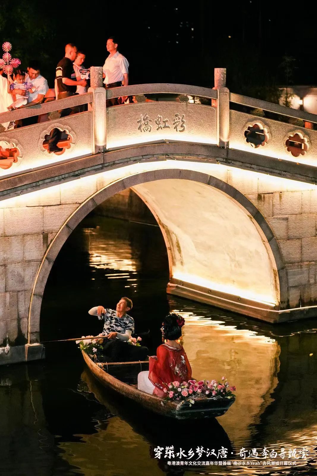 汉服巡游、大唐不倒翁、虹桥笙歌、清平调、贵妃出游等沉浸式演出轮番上演,水乡夜景与笙歌燕舞交相辉映,形成一场视觉听觉盛宴。