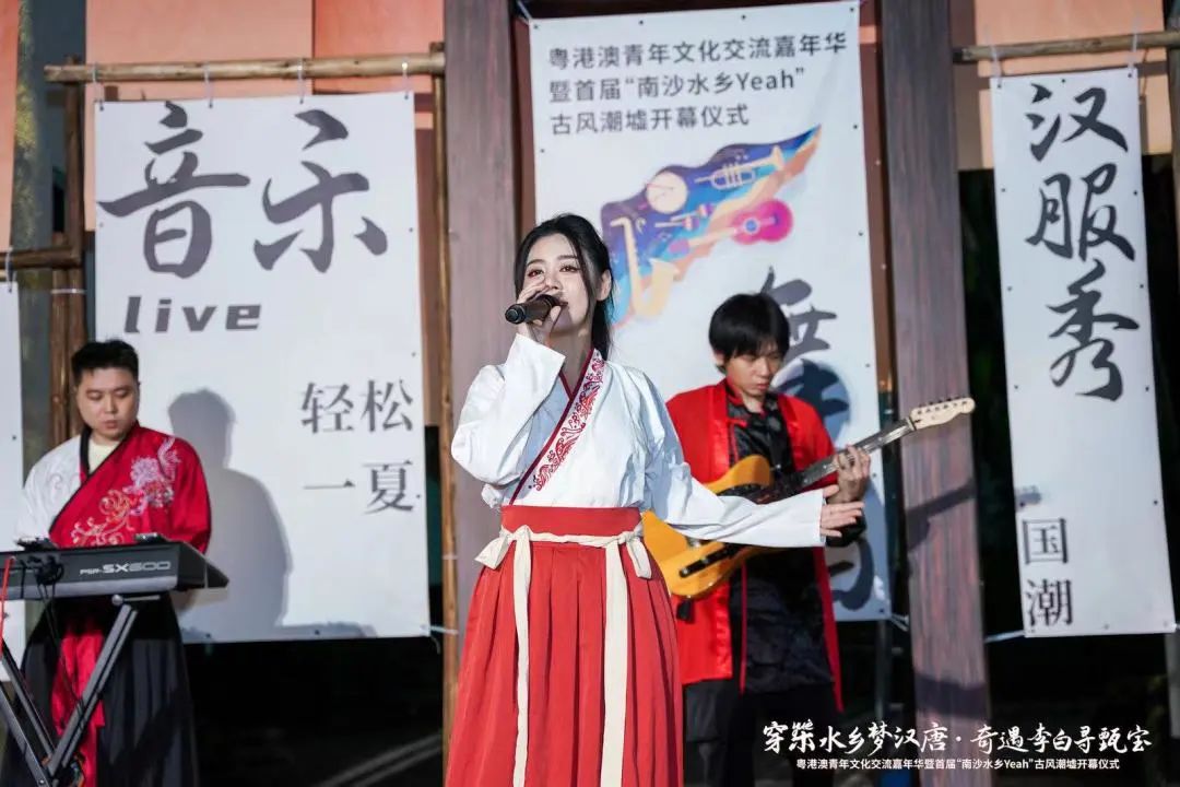 正在南沙参与“百企千人”实习计划的港澳青年学生也来参加活动。他们或作为游客,或作为演出人员,参与到水乡一条街夜游活动中,享受这场中华传统文化盛宴。