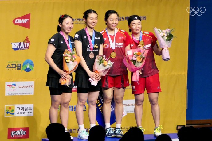 刚刚结束的2023年韩国羽毛球公开赛女双决赛中,“凡尘组合”陈清晨/贾一凡获得冠军。