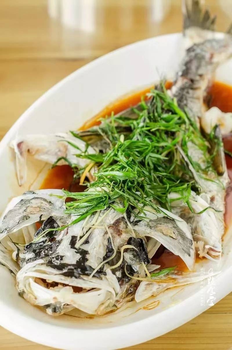 清蒸鱼,用辟腥利器姜葱和豉油来调味,是在广东一带最常见的做法。但来自梯面的山水瘦身活鱼却可以“裸烹”,即不用姜、葱、酱油,只是简单的抹盐清蒸,热油洒淋,原汁原味。入口,嫩滑鲜甜,鱼味香浓,肉质结实而富有弹性,毫无腥味,并且带有一定的胶质,味道回甘,异常鲜美。
