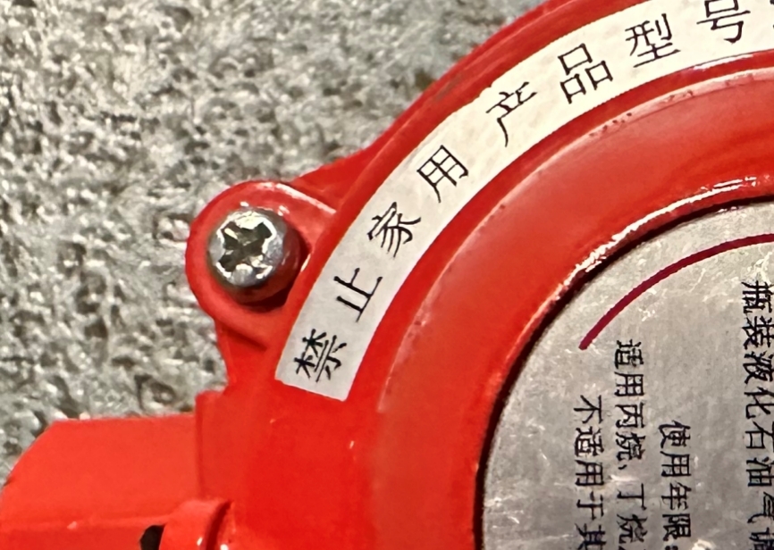 五看警示:国家标准要求商用瓶装液化石油气调压器应在明显位置以不易磨灭的形式标有“禁止家用”字样。商用和家用均为专用,不可互换。