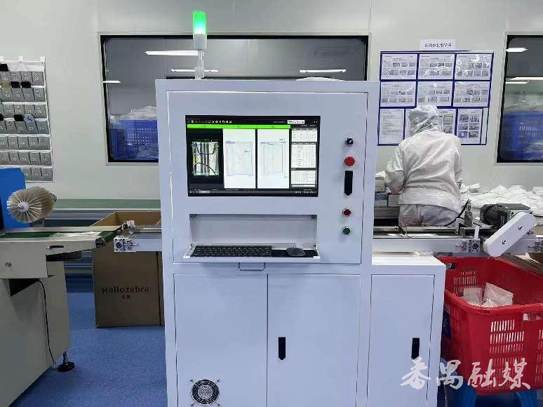 位于东莞市大朗镇的东莞英诺威智能技术有限公司车间里,一只只口罩不断从设备中通过,这台口罩片检测设备,检测速度超过160片/分钟,全程无接触式检测,可实现自动剔除不良品的功能。