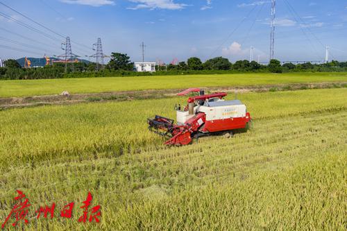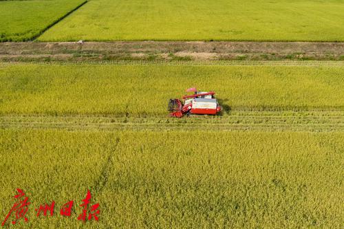 无人农机正在收割早稻。