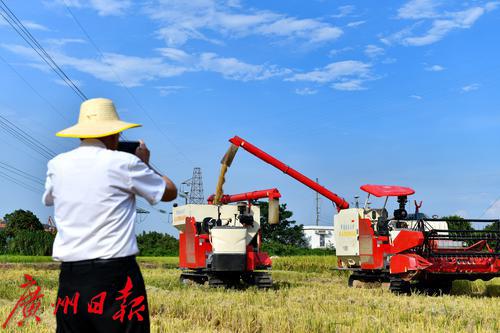 罗锡文院士用手机拍下无人农机收割早稻的场景。