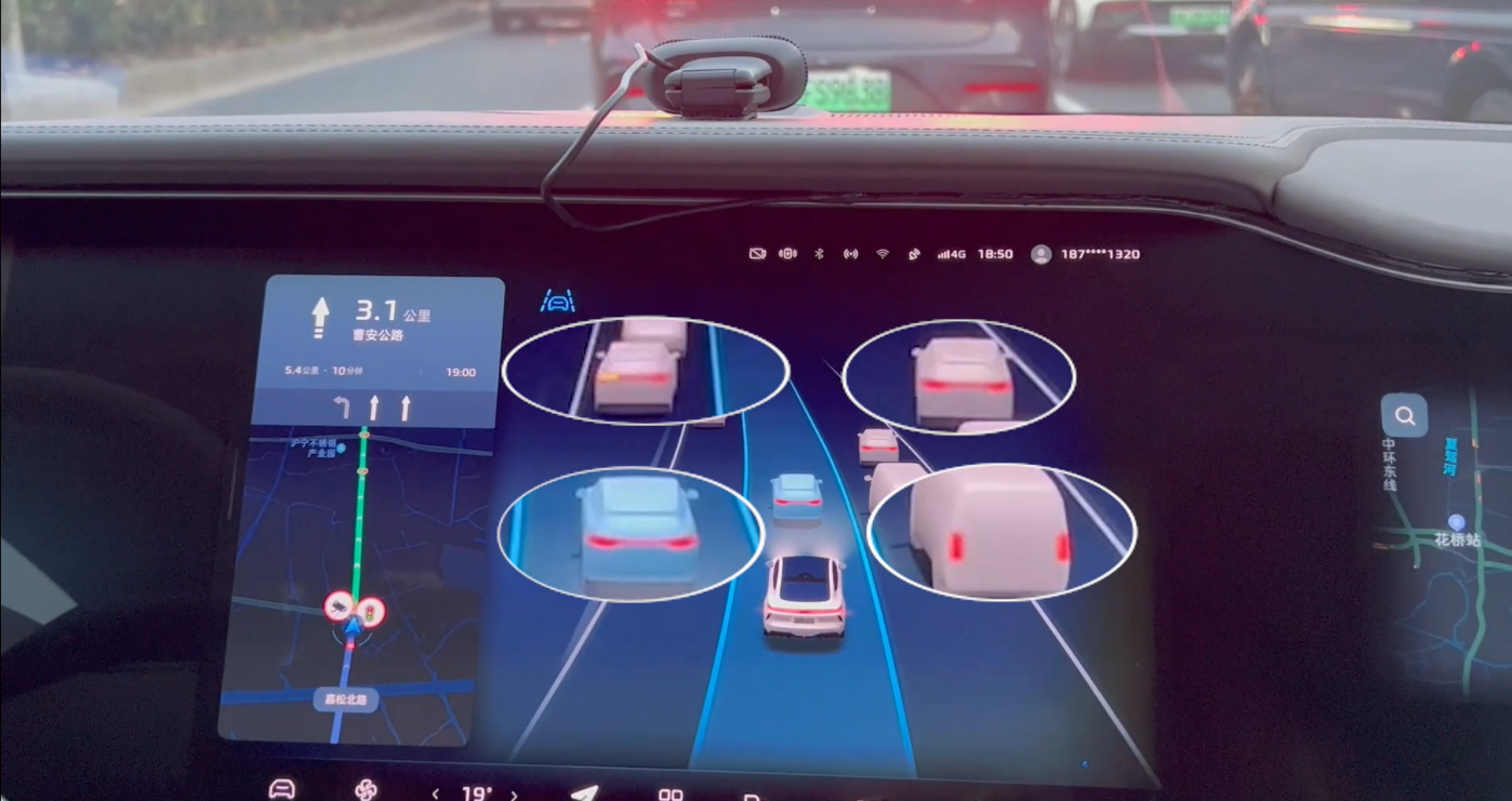 (“光维感知建模技术”精准识别并显示相邻车辆的转向灯与刹车灯)