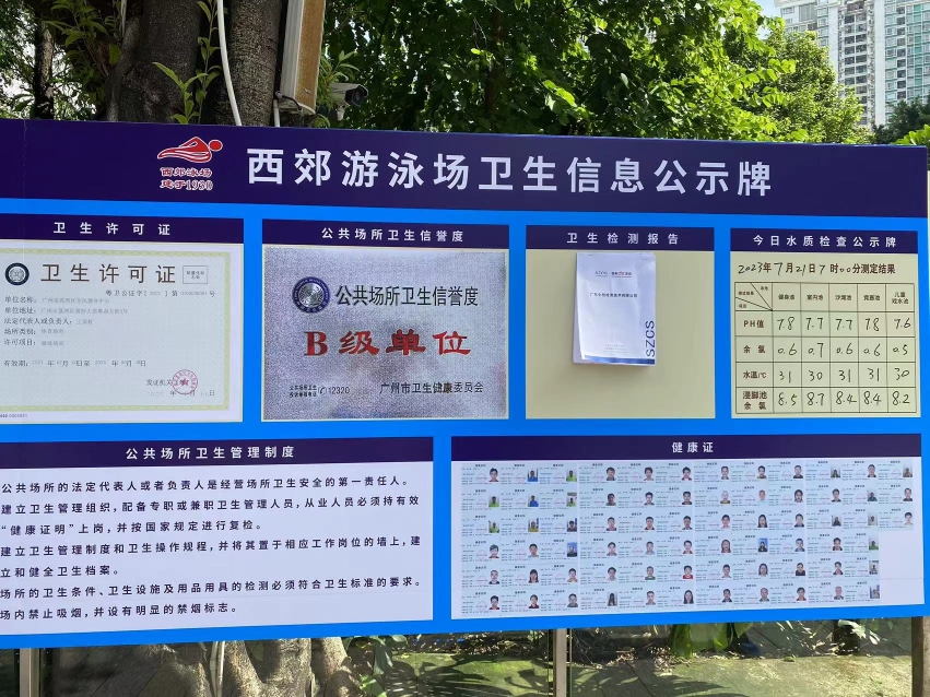 第二,看游泳场所卫生信誉度等级、场所每日公示的水质自测数值,及通过肉眼观察池水的清晰度等方式综合判断。卫生信誉度分为ABC三个等级,等级越高表示卫生状况越好,其中A级为优秀,B级良好,C级为一般。