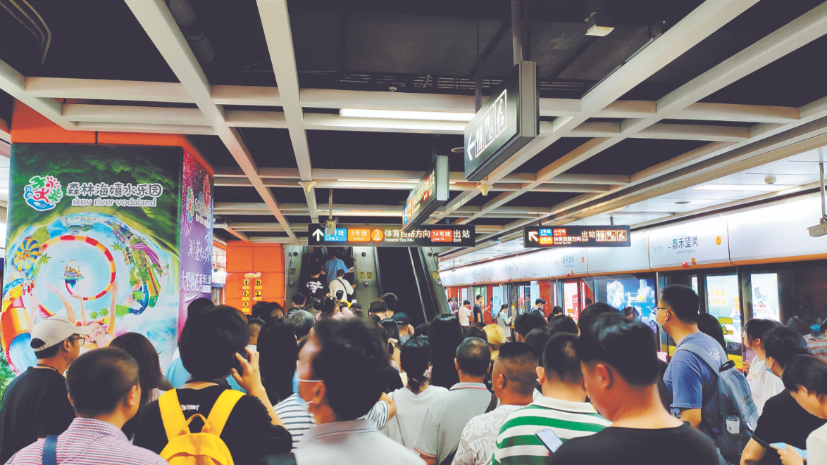 广州地铁嘉禾望岗站人流如织。