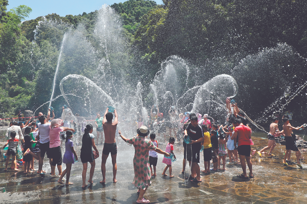 市民在流溪河国家森林公园欢乐玩水。