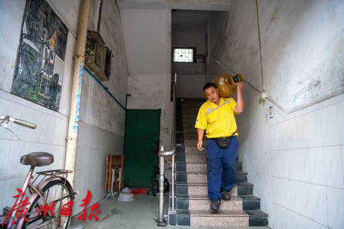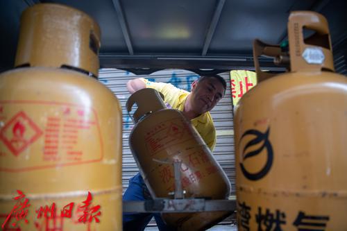 响午时分,一个老客户打了电话过来,家里瓶装气用完了。广州金湾燃气有限公司榄山新村燃气便民服务部送气工吴海清马上扛上一罐气,骑上专用三轮电动车,身穿黄色工作服,顶着明晃晃的太阳,出发了。虽然管道天然气已经走入千家万户,但在一些老旧小区、城中村,包括一些小餐饮门店,瓶装液化气依然有不少用户。