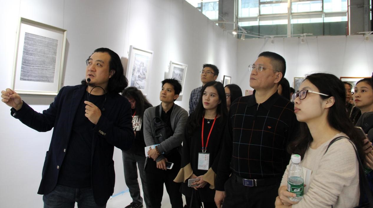 彭文斌为观众导览解说艺术品(资料图片)