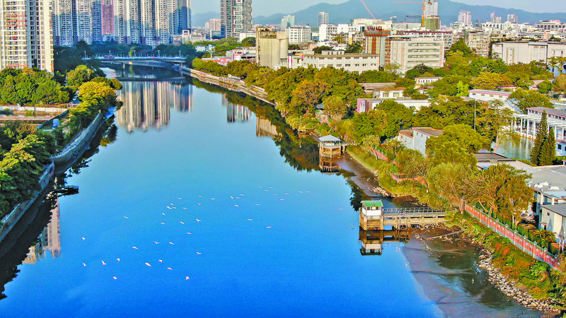 盛夏时节的石井河,水面在阳光照耀下波光粼粼,不时有三两只白鹭在水面滑翔而过。附近的居民刘姨,喜欢傍晚时分在河两岸悠闲散步,“以前这里是黑臭河涌,尤其是夏天更是恶臭难闻。别说散步,靠近都不愿意。现在水质好很多,在河边散步很舒服、很喜欢。”