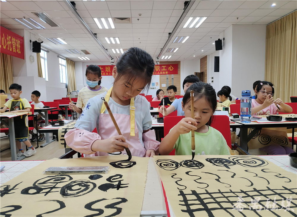 番禺职工子女暑期各类活动在全区各有关镇街、单位广泛开展。石楼镇总工会利用职工之家阵地开展了青少年乒乓球免费公益培训;化龙镇总工会主办“候鸟港湾”职工子女暑期公益培训班,为129名职工子女开设了舞蹈、工笔花鸟、英语、篮球等动静结合的特色课程;番禺区公安分局继续开办番禺区少年警校,培养了240名有胆色、意气风发的警娃,还同时举办了爱心托管班,打造了民警员工子女临时托管的“警娃之家”;番禺区中心医院在院内办起了“白衣少年”暑期混龄托管班,为70余名医护人员子女提供了软笔书法、国际象棋、医学科普、非遗美食等丰富多彩的课程,并组织职业观摩活动,搭建医生父母和子女的沟通桥梁;区工人文化宫联合区就业训练中心开办了职业体验夏令营,非遗美食、家庭收纳、视频剪辑、急救知识等课程激发了学生的学习热情;广州亚瑱珠宝有限公司继续开展全日托暑期全日托管班,“托”稳职工心。