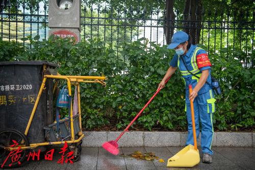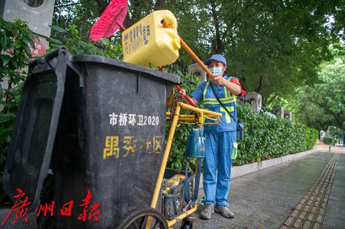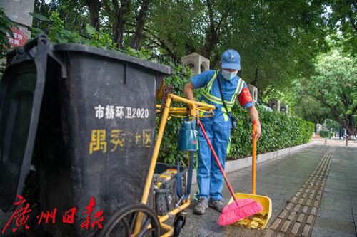 张羽仙,今年45岁,是番禺区市桥街的一名环卫工人,工作单位是广州市市桥环境卫生服务有限公司。为了生活,几年前她从外地来番禺务工,选择成为环卫工人。为了保质保量地完成保洁任务,她每天凌晨5点半钟就来到岗位上,一天作业下来,经常累得满头大汗、腰酸脚痛,一千毫升的水壶都要喝上两壶水。