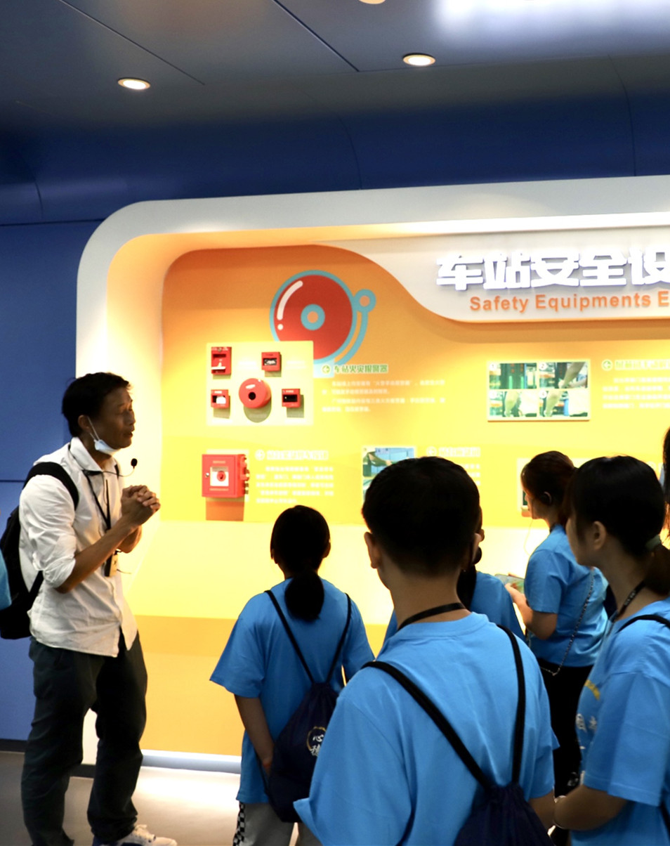 第一站是广州地铁博物馆,馆内10个站点、38个主题展项全方位展示立体科普空间。其中最受欢迎的是悠乐站,这里有地铁文明行为判断体感游戏、进闸督察游戏、安检游戏等益智游戏。还有“模拟驾驶”儿童游乐区,孩子们坐在地铁驾驶室,体验着驾驶地铁在地下飞速穿梭的感觉。