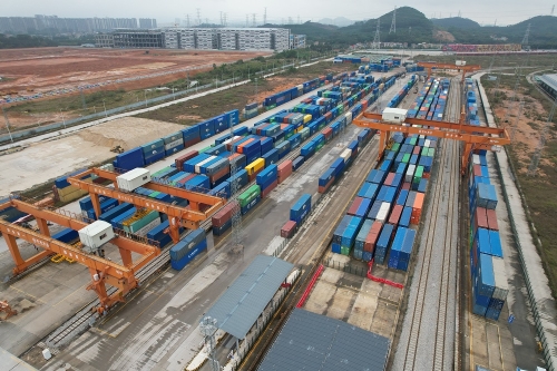 广州东部公铁联运枢纽2021年5月25日开行首列中越班列,7月1日开行首列中欧班列,12月3日开行首列中老班列。截至2023年6月底,已累计发运国际班列535列,运输货物50074标箱,服务外贸企业超5000家。