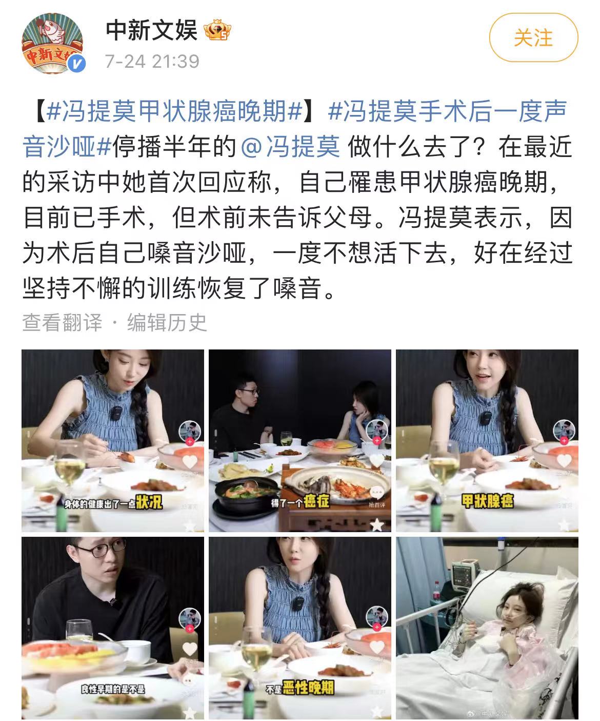 在采访中自曝罹患甲状腺癌,