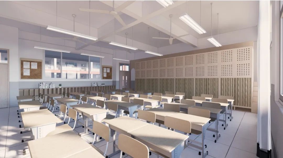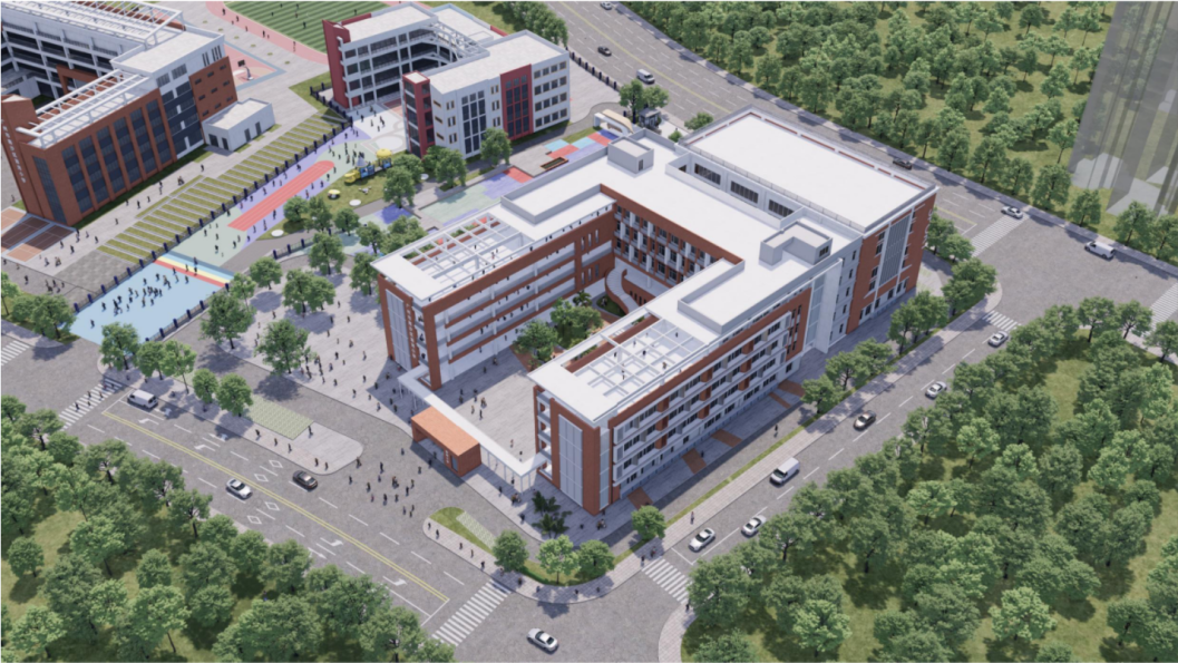 据介绍,港湾小学扩建项目设计以传承“文脉光环”为出发点,方案搭建“IQ”型绿化意境,将“文体教育光环”作为学校的核心,也是相互连接的建筑物集合。