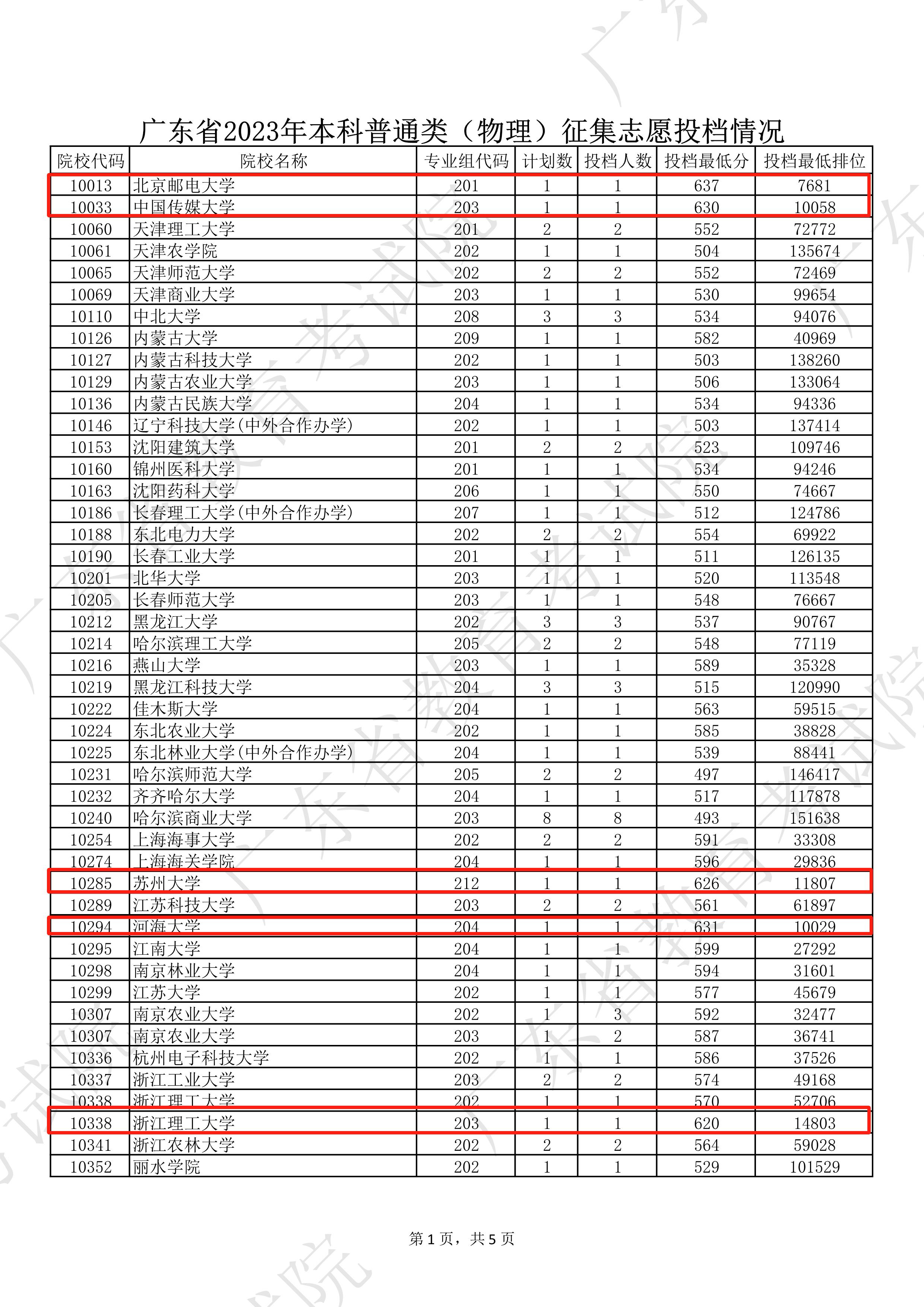 普通类(物理)方面,北京邮电大学、中国传媒大学、苏州大学、河海大学、浙江理工大学、南昌大学、中南财经政法大学、中南大学、广州医科大学、深圳大学(地方专项)、西南交通大学、云南大学、长安大学等院校有专业组在600分以上完成投档。