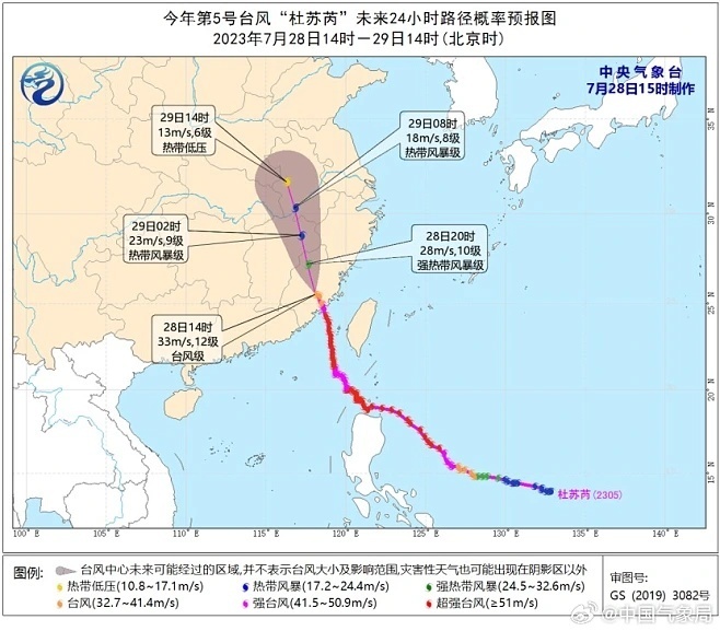 虽然第5号台风杜苏芮已登陆福建,强度逐渐减弱,但其影响仍将持续,将给我国东部地区带来大范围强降雨。福建、浙江、江西等地需继续做好台风和防汛工作。另外,河北、北京、天津、河南等地降雨有极端性,致灾风险高,需提高警惕!