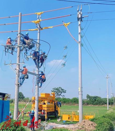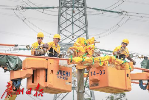 广州供电局工作人员头顶烈日开展高空不停电作业