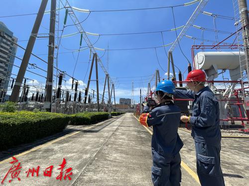 广州供电局工作人员正在对220千伏瑞宝变电站内设备进行红外测温确保设备安全运行