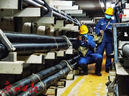 广州供电局工作人员在电缆隧道进行电缆安全监测