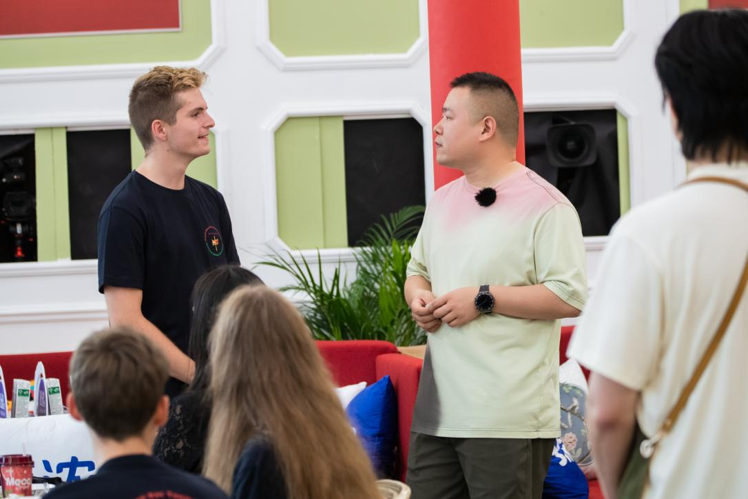 席间,一位中文流利的匈牙利学生向岳云鹏发起挑战,岳云鹏现场收徒,教学相声经典选段报菜名。在品尝中华美味的同时,让更多人知晓其中蕴含的文化内涵。