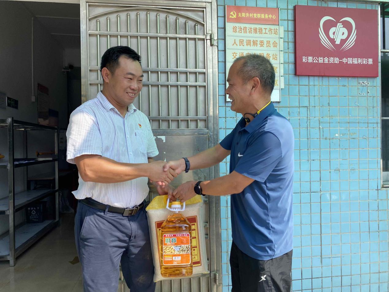 在太阳升村,驻村干部、村“两委”干部、民兵营长为退役军人送上米、油、面等慰问品,并致以节日的问候,勉励大家继续发扬军人的优良作风,永葆军人本色。
