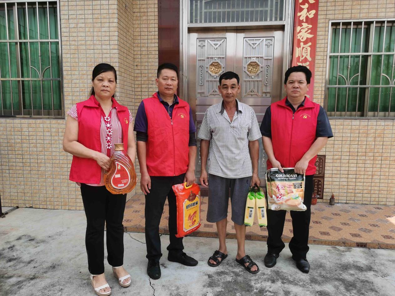 在新村村,驻村干部带队到退役军人谢建良、梁树森家中慰问,了解他们的生活、健康等情况,并向他们派发建军节慰问品。