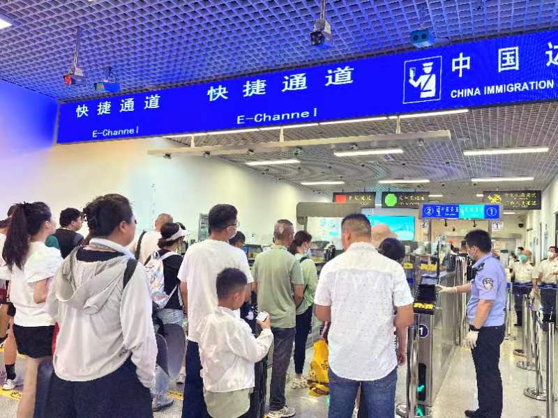 據了解,灣仔口岸是珠海最早設立的兩個對外口岸之一,距拱北口岸2.5千米,西向港珠澳大橋口岸、南向橫琴口岸,與澳門內港口岸隔江相望,水面距離僅約300米,乘坐客輪航行時間3-5分鐘,是澳門連接珠海最便捷的海上通道。隨着7月26日十字門隧道、南灣大道橫琴隧道連接段的正式通車,灣區互聯互通發展格局再次邁上新台階。灣仔邊檢站執勤一隊隊長陳穎介紹,暑假到來後,廣大群眾出行出遊需求集中釋放,每日平均客流較6月份上漲約25%、外籍旅客上漲約60%,日均查驗出入境旅客超4000人次,單日最高驗放量突破6000人次。通關人員以粵澳兩地居民、研學交流、赴澳務工、小額貿易人員和旅客為主,入境高峰時間主要集中於上午8點至11點,出境高峰集中於下午5點至晚上10點。「從澳門坐船過來只需要5分鐘,年初我們已經在灣仔買房了,周末和放假的時候我都會帶着家人一起回來住,既方便又舒服。」剛剛通關走出口岸的澳門市民李先生說。
