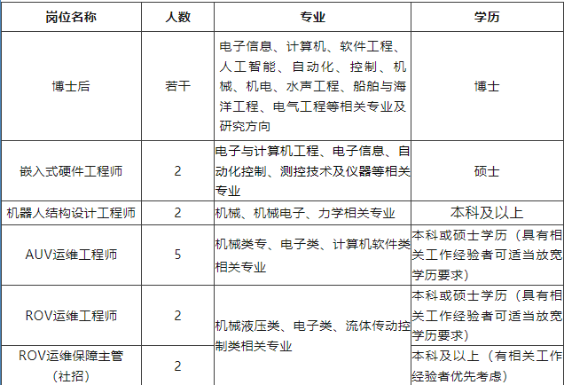 2.有从事海洋机器人或与智能无人系统相关领域者优先考虑;