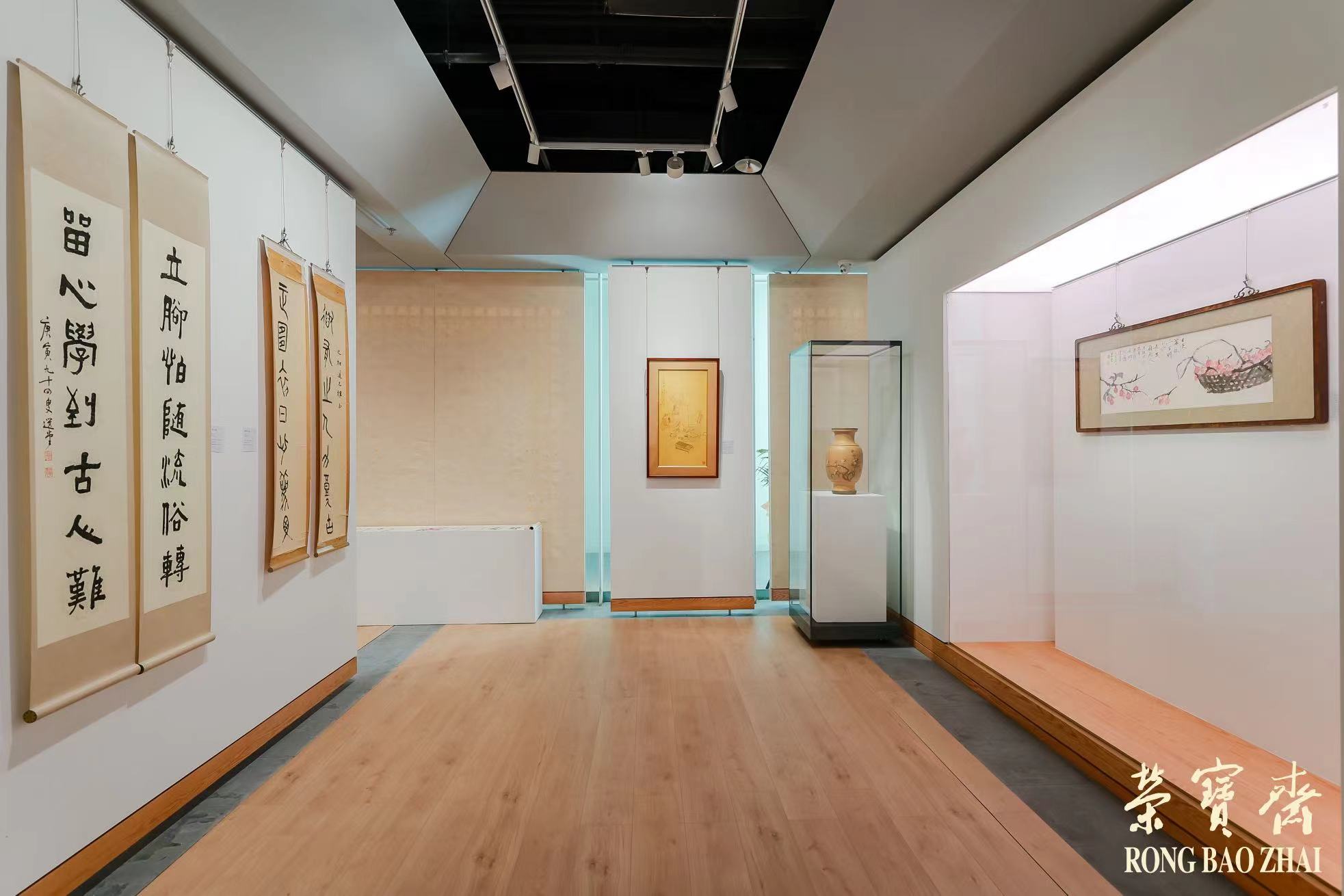 本次展览展出了饶宗颐的山水、清供、蔬果等画作题材,同时包含对联、扇面、匾额等作品形式。