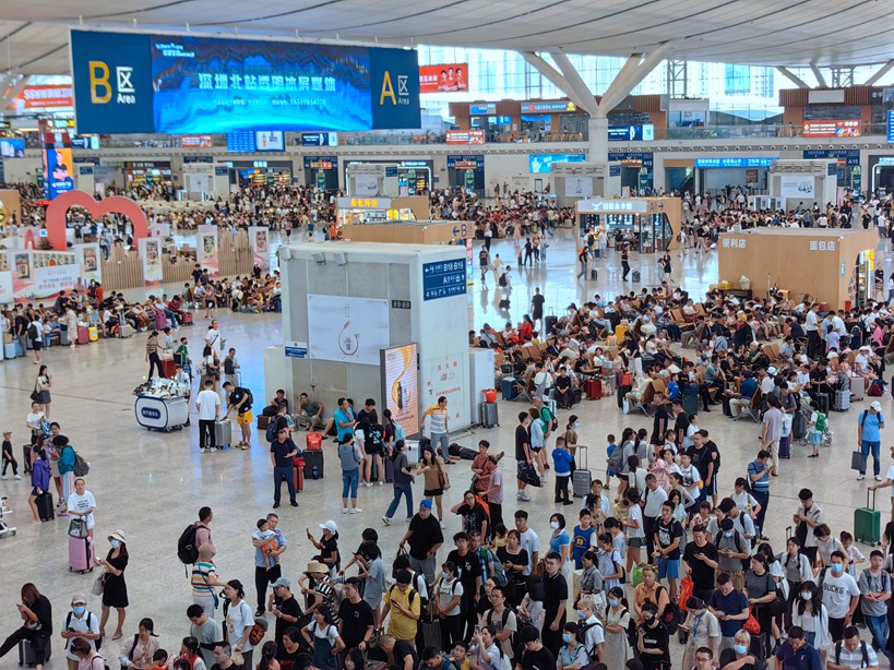暑运期间,广州南站、深圳北站、长沙南站等客运大站增派500余名人员支援安检、客运岗位,增开验证、安检通道,提高旅客进站效率;每天在进站口、安检口、检票口、中转口等重点岗位安排志愿者加强宣传组织,引导旅客有序进站乘车;持续加强站内环境卫生、饮水供应,完善车站引导服务表示,加密洗手间、候车室的卫生清扫消毒工作,营造舒适便捷的旅客出行环境。