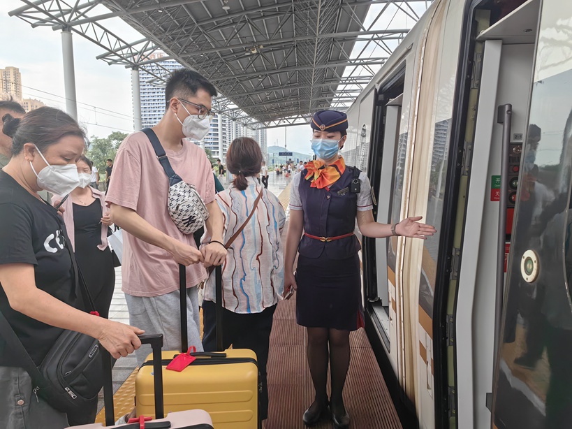今年7月1日起,广铁首次担当开行进京、进沪周末线夜间动卧列车,全面做好夜间列车作业标准、乘降组织、安全宣传、应急处置等工作,将“红木棉”服务理念融入工作中,努力营造夜行千里的“移动宾馆”体验。