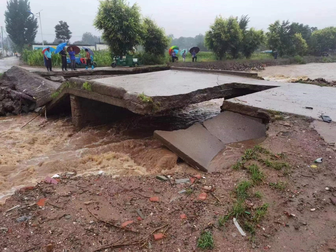 7月29日至31日,河北省元氏县最大降雨量638.4毫米,平均降雨量349.7毫米。北正乡南正桥被冲毁,乡村干部在现场值守 图/陈永辉