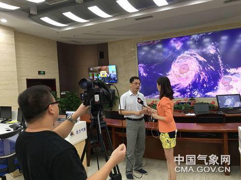 在台风“莫兰蒂”登陆前后,福建省福州市气象台专家现场连线电视台对台风进行解读