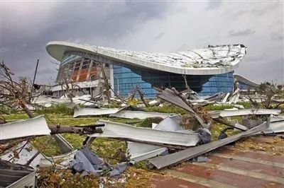 2015年超强台风“彩虹”登陆影响后,湛江奥体中心受损严重 图/湛江晚报