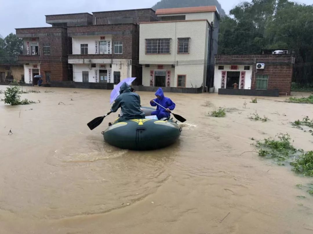 2018年9月17日,广东省阳春市河㙟镇新阳水灾严重,村委会抢险求援 图/刘一冀