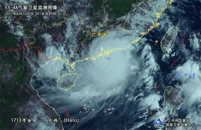 2017年8月23日9:00(北京时间)FY-4A气象卫星监测图像