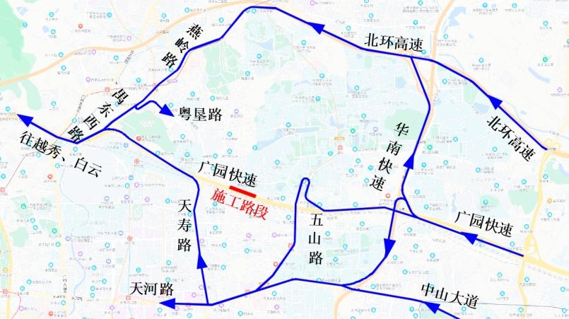 广园快速路(公安消防总队对出路段)中央绿化带及广园快速路西往东方向内侧车道将进行围蔽全时段施工。