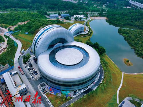 航空轮胎大科学中心依山傍水,风景如画,是广州新的地标性建筑。